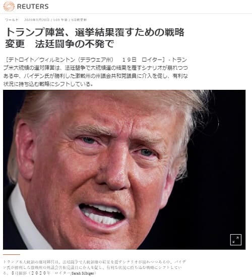 トランプ陣営の弁護団は、来週頃から証拠を表に出してバイデン陣営の全ての関係者を叩き潰す体制を整えているように思います。メディアから何をどのように報道されても、じっと我慢して準備しています。