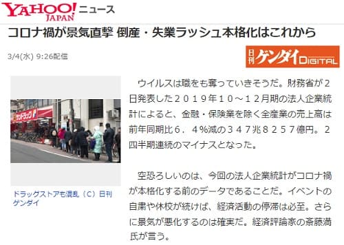 これで、あらゆる産業の設備投資や雇用はしばらくお休みになります。余ったカネで新規事業をする大企業の多くは、資金繰りに困るので大量リストラから始まってダウンサイジングを徹底的に断行するものと考えられます。