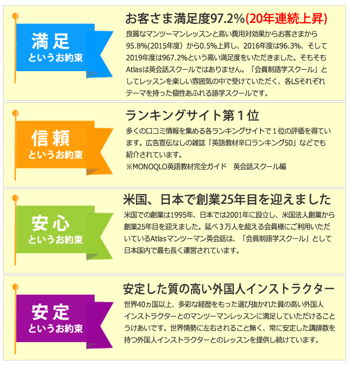そこでAtlasマンツーマン英会話では、無料体験レッスンは1日限定10人までとし、約1時間の中に体験レッスンとそのレベルチェックにより自宅学習とレッスンカリキュラムをあなただけにお教えすることにしました。